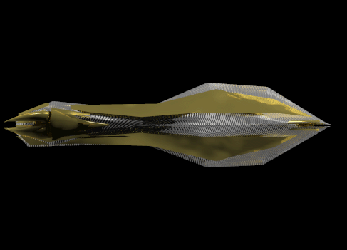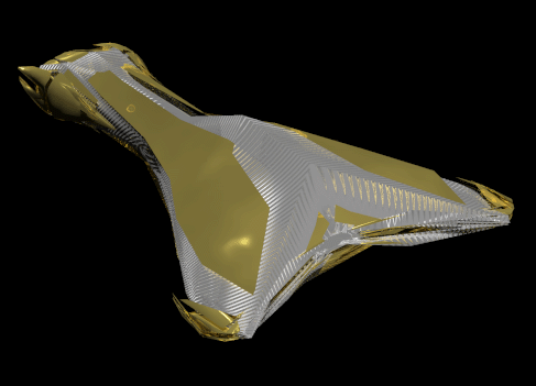 In the back, its got some rear shield emitters, and the engines. The engines are the two openings there, they start at the end of the Y branch on either side of the ship and extend toward the center of the ship. They may not look like they make that ship move to fast, but don't underestimate in. The engines are fairly wide which allows for a good amount of thrust output, that and the Nolaran's advanced propulsion systems give it a pretty good top speed.